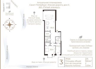 Трехкомнатная квартира на продажу, 129.2 м2, Морской проспект, 11