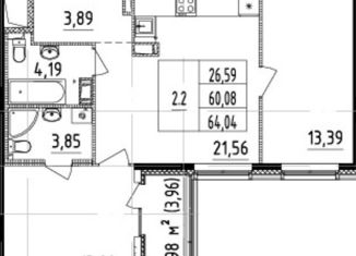 Двухкомнатная квартира на продажу, 65.4 м2, Большой Сампсониевский проспект, 77