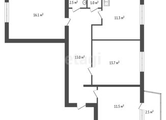 Общая площадь: 55.5 м2