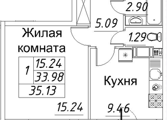 Продам 1-комнатную квартиру, 35.33 м2, проспект Авиаконструкторов, 54