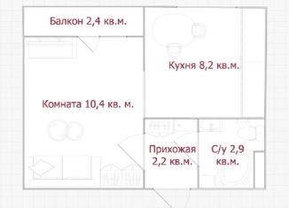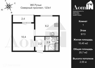 Однокомнатная квартира на продажу, 25.7 м2