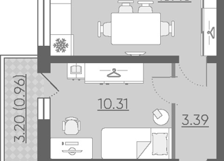 Однокомнатная квартира на продажу, 30.1 м2