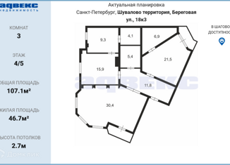 3-ком. квартира на продажу, 107.1 м2, Береговая улица, 18к3