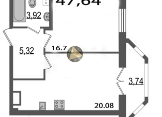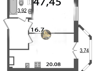 1-комнатная квартира на продажу, 47.45 м2, Лодейнопольская улица, 7