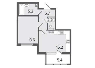 Общая площадь: 52.2 м2