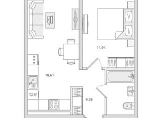 Продажа однокомнатной квартиры, 34.2 м2