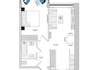 Продажа 1-ком. квартиры, 46.09 м2, Тосина улица, 6