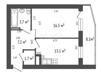 Общая площадь: 37.1 м2