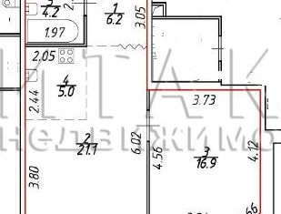 Общая площадь: 41.2 м2