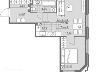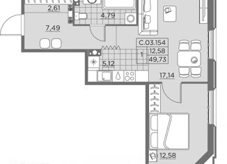 Общая площадь: 49.7 м2