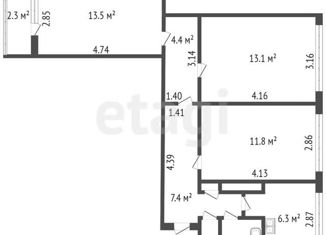 Общая площадь: 59.9 м2