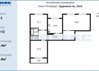 Продажа трехкомнатной квартиры, 66.6 м2, проспект Ударников, 32к1