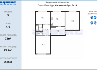 3-комнатная квартира на продажу, 72 м2, Сиреневый бульвар, 2к1