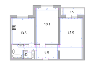 Общая площадь: 32.5 м2