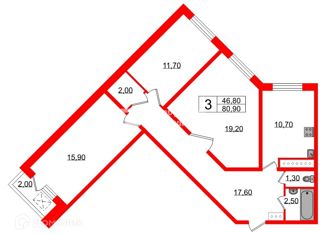 Общая площадь: 60.8 м2