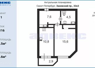 Продажа 1-комнатной квартиры, 34.5 м2, Заневский проспект, 42