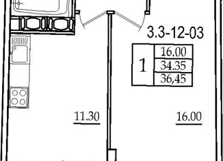 Общая площадь: 34.35 м2