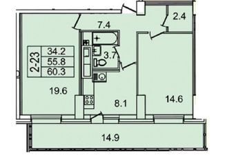 Общая площадь: 66.4 м2