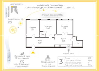 Продаю 3-комнатную квартиру, 71.8 м2, Малый проспект Петроградской стороны, 12