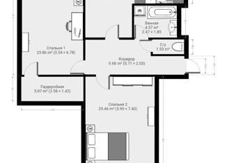 Общая площадь: 55.8 м2
