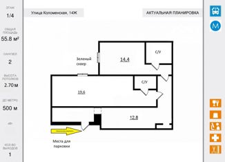 Продаю 2-ком. квартиру, 55.8 м2, Коломенская улица, 14Ж