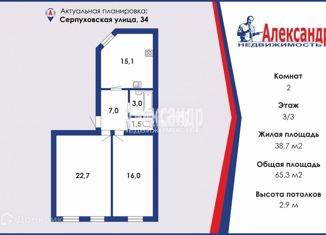 Продаю 2-комнатную квартиру, 65.3 м2, Серпуховская улица, 34