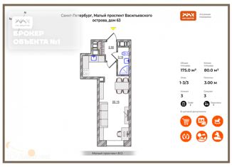 Продам квартиру студию, 88 м2, Малый проспект Васильевского острова, 54к2