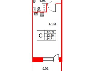 Общая площадь: 24.7 м2