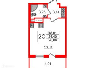 Квартира на продажу студия, 24.4 м2, Светлановский проспект, 8