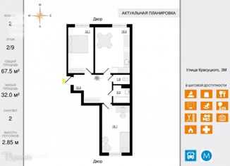 Общая площадь: 67.5 м2