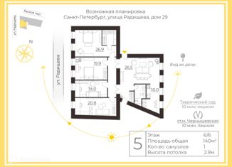 Пятикомнатная квартира на продажу, 140 м2, улица Радищева, 29