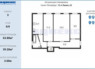 Продам 3-комнатную квартиру, 63.8 м2, 15-я линия Васильевского острова, 62