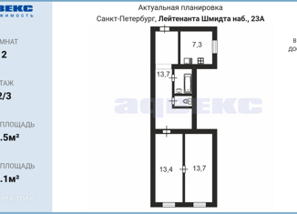 2-комнатная квартира на продажу, 52.5 м2, набережная Лейтенанта Шмидта, 23