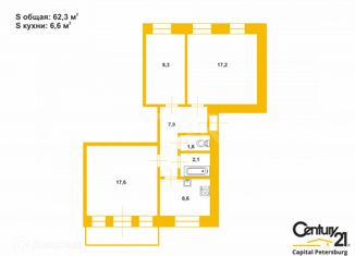 Продам двухкомнатную квартиру, 59.5 м2, Белоостровская улица, 10к1