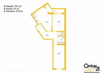 Общая площадь: 75.7 м2
