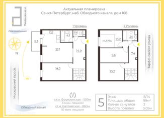 Продажа 4-комнатной квартиры, 99 м2, набережная Обводного канала, 108