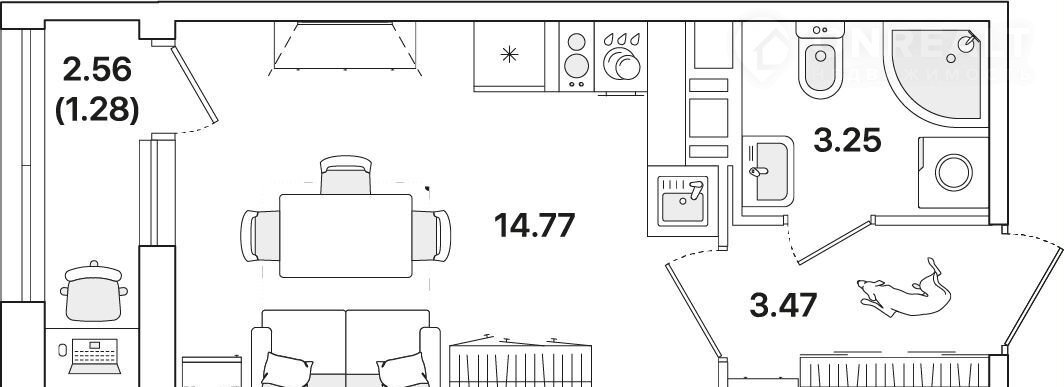 Общая площадь 22.8 м2