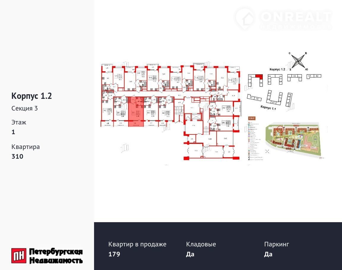 Квартира студия, 25.1 м2, этаж 1 / 12, на продажу в Санкт-Петербурге, 1-й Предпортовый проезд, 1