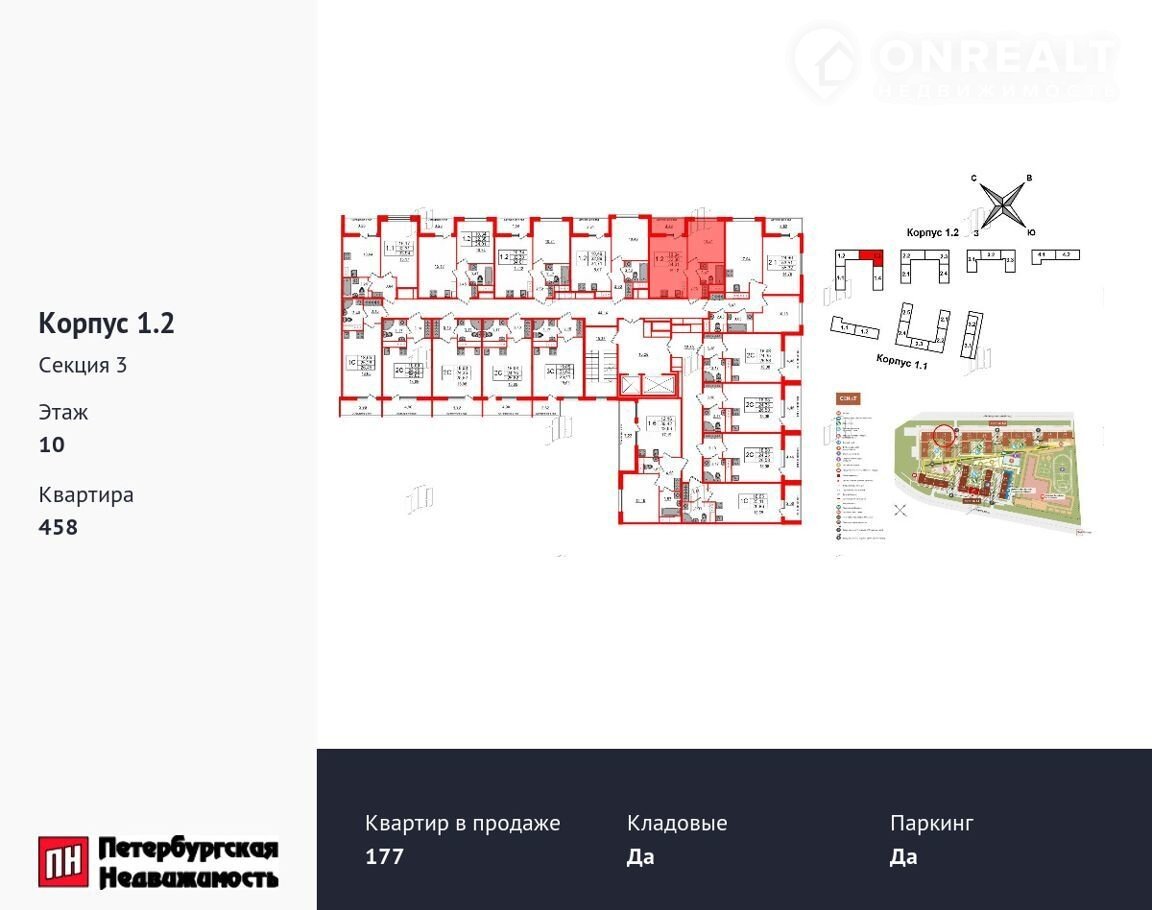 1-комнатная квартира, 32.4 м2, этаж 10 / 12, на продажу в Санкт-Петербурге, 1-й Предпортовый проезд, 1