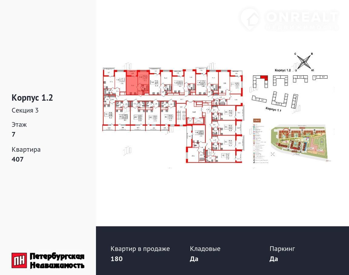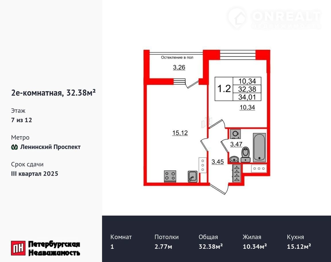 1-комнатная квартира, 32.4 м2, этаж 7 / 12, на продажу в Санкт-Петербурге, 1-й Предпортовый проезд, 1