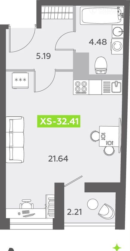 Общая площадь 32.4 м2