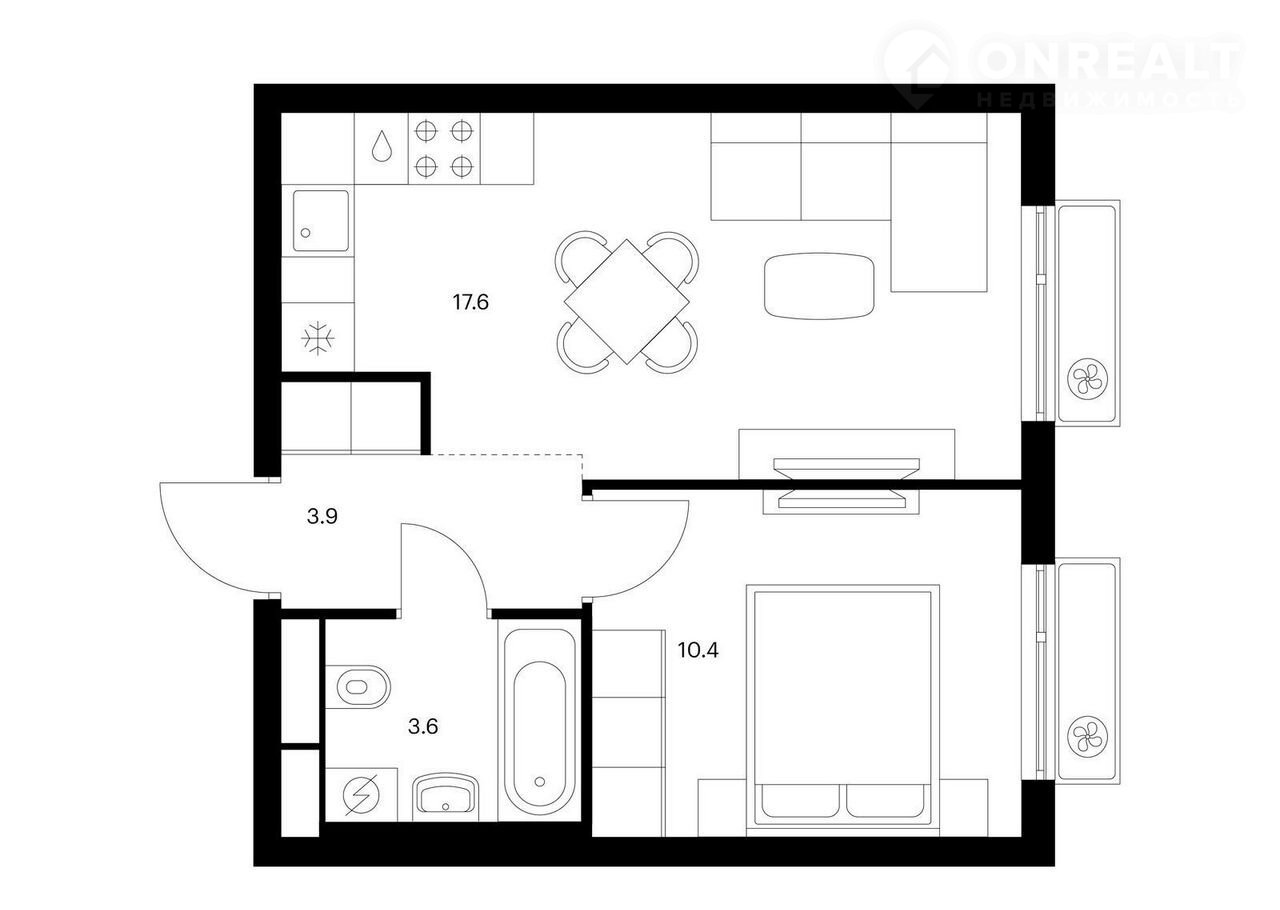 Жилая площадь 10.4 м2