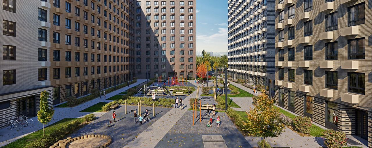 Во дворах приятно отдыхать, знакомиться с соседями и даже заниматься йогой, а для детей мы построим детские площадки. Рядом появятся современные спортивные площадки. На первых этажах домов откроются магазины, кафе и другие сервисы. Через весь жилой район протянется широкий пешеходный бульвар для прогулок и спорта.