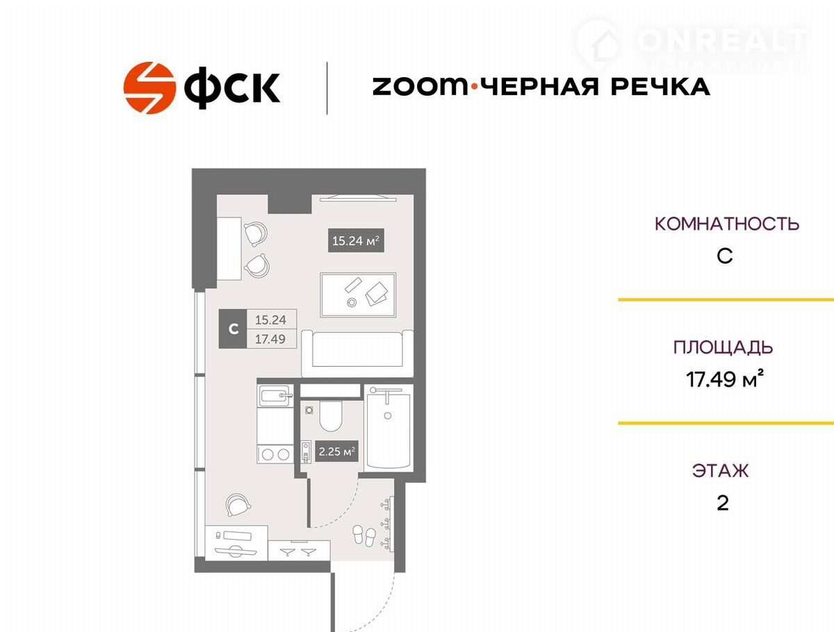 Общая площадь 17.5 м2