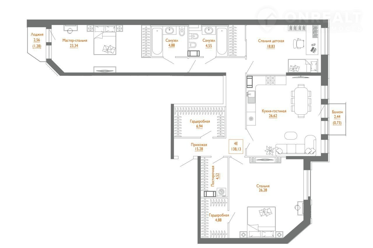 Общая площадь 136.6 м2