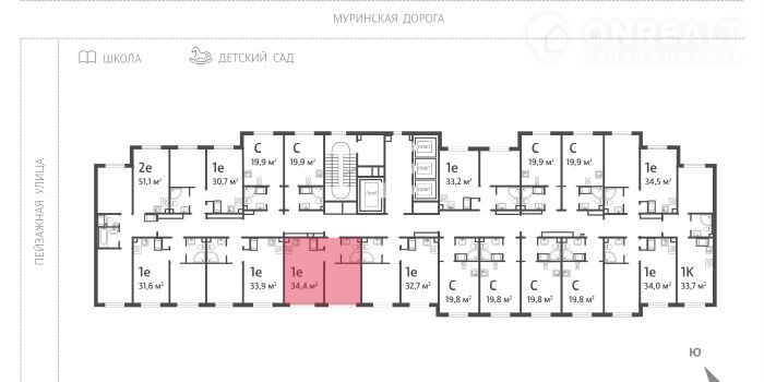 1-комнатная квартира, 34.4 м2, этаж 5 / 22, на продажу в Санкт-Петербурге