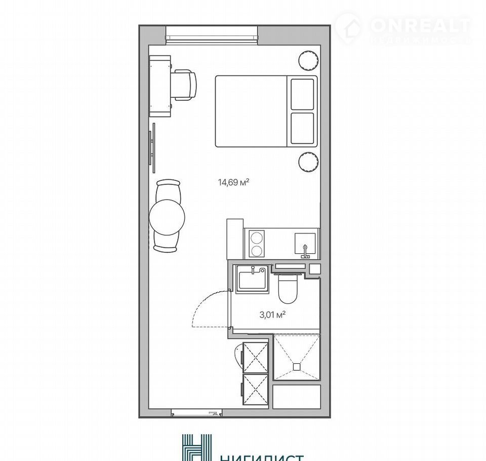 Общая площадь 17.5 м2