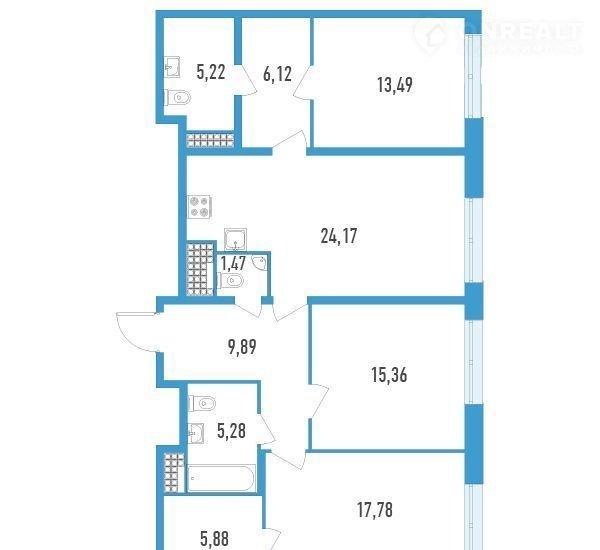 3-комнатная квартира, 104.7 м2, этаж 17 / 23, на продажу в Санкт-Петербурге, улица Типанова, 22