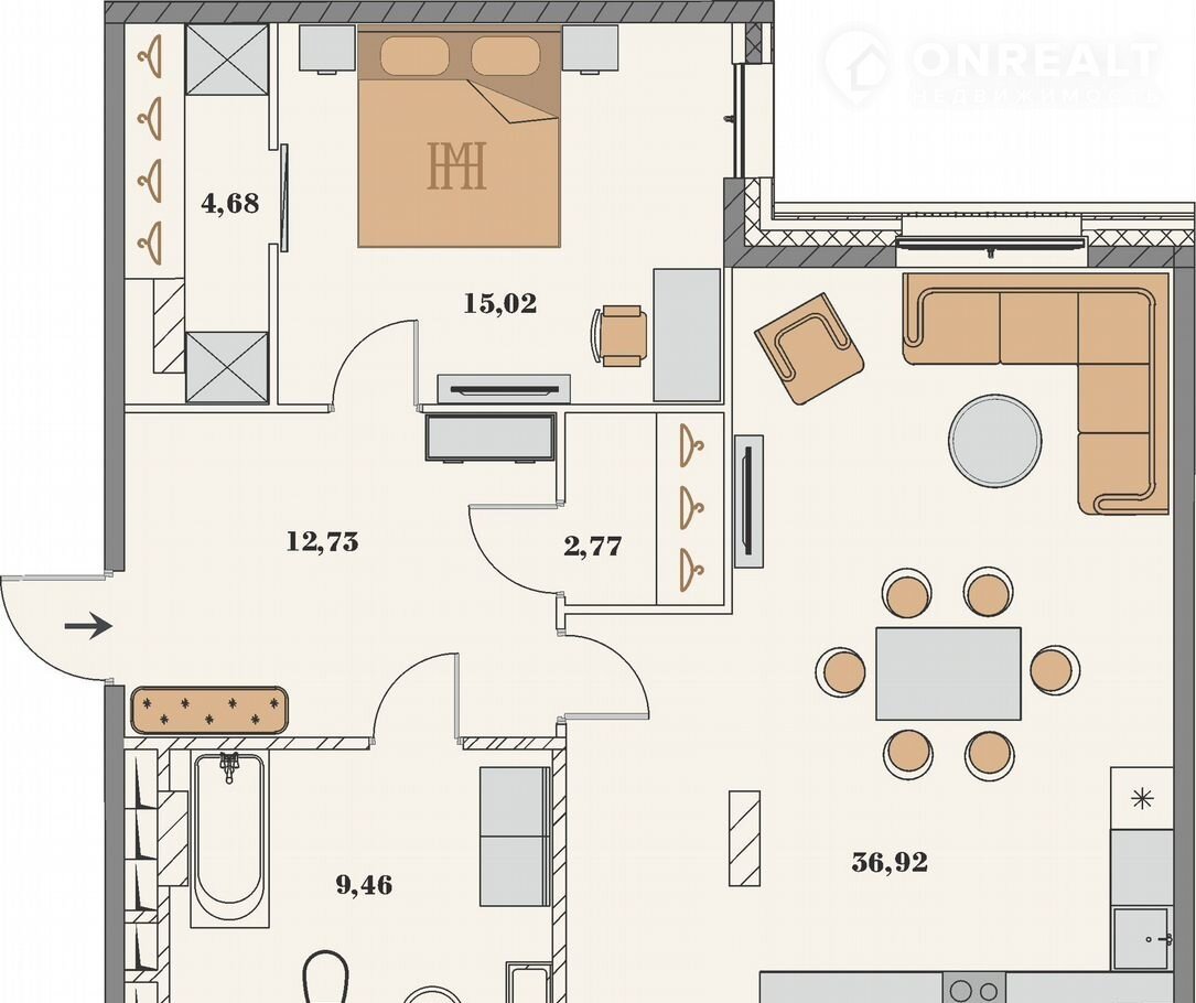Площадь кухни 36.9 м2