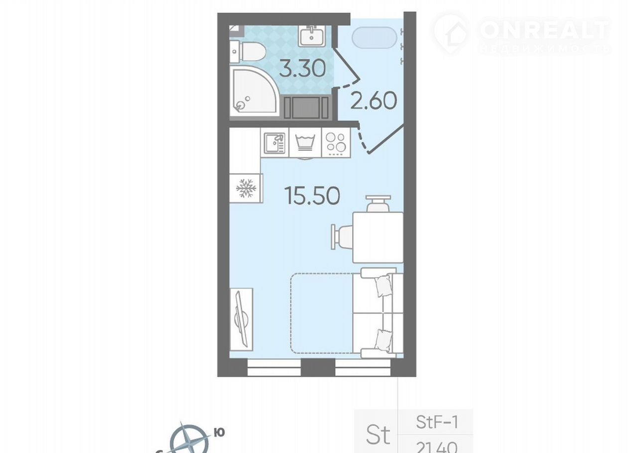 Общая площадь 21.4 м2